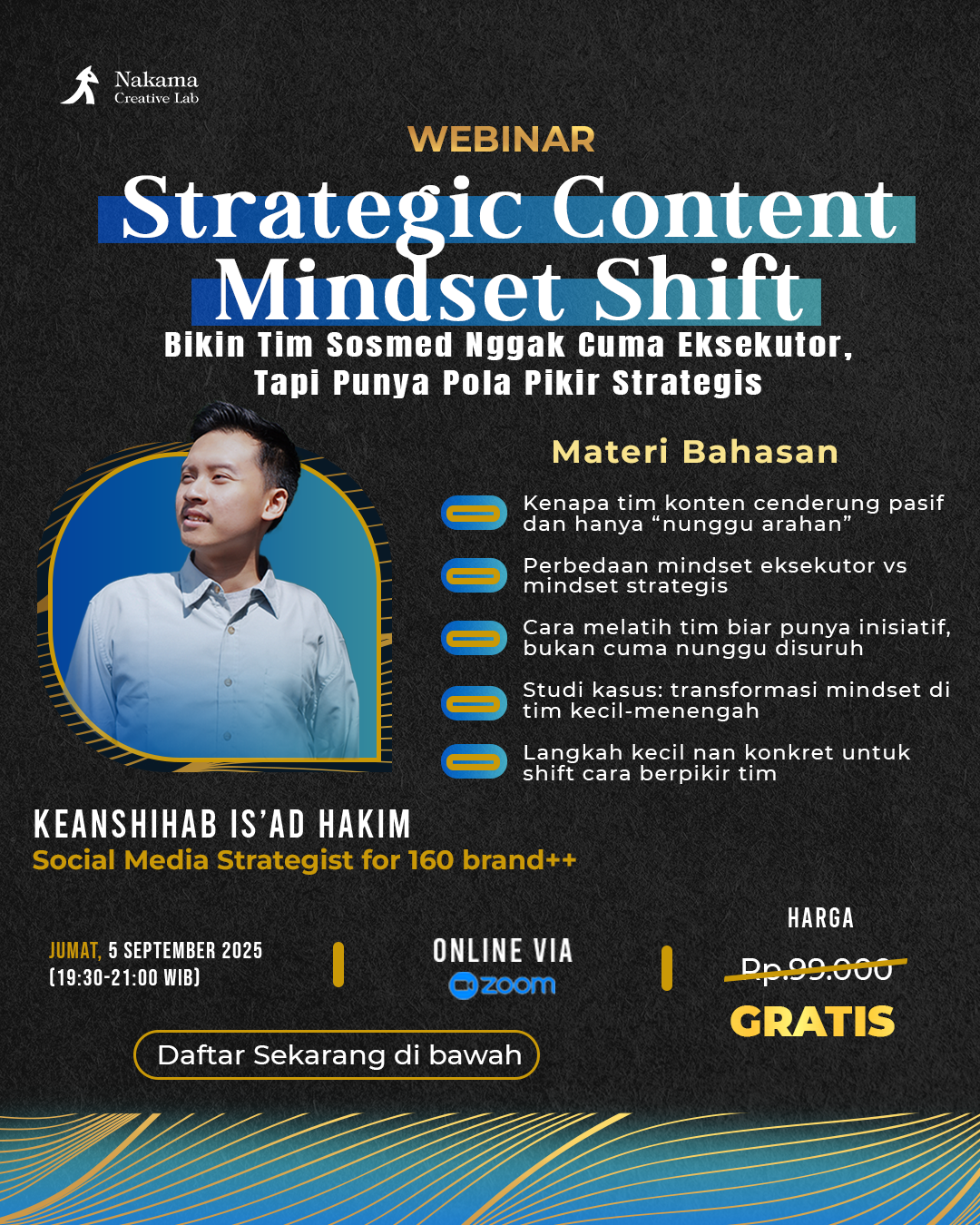 📅 Jumat, 5 September 2025 | ⏰ 19:30 – 21:00 WIB | 💸 Gratis